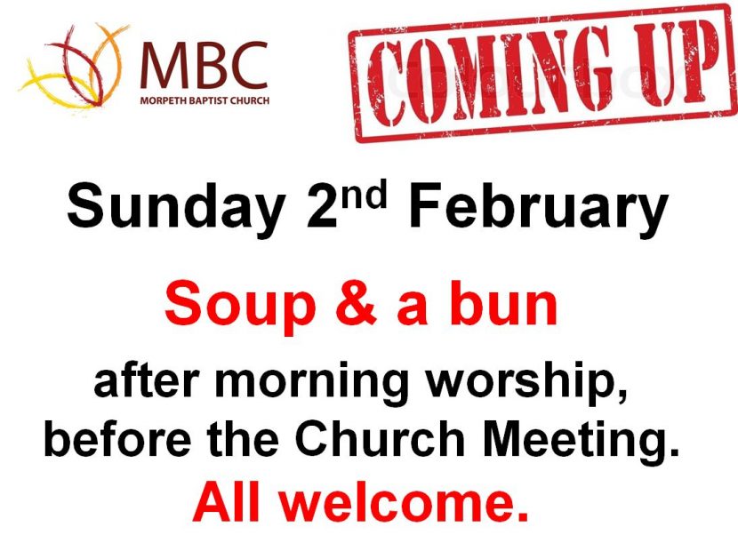 Sunday 2nd February Soup & a cob after morning worship, before […]